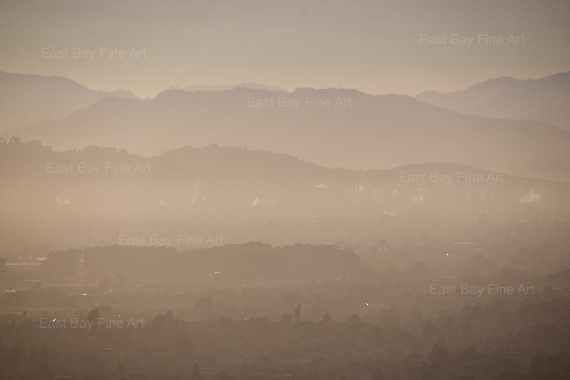 I like the times and places in California when the air is heavy with particulates because the haze erases horizons. When the fog rolls in and lingers, I can see and feel the air around me. Tiny water droplets scatter light and smoothly stratify the land. The haze simultaneously creates a sense of depth and ambiguity creating a fluid sense of what is near to me and what is far.